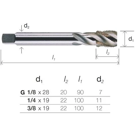 maschi a macchina HSS-Co, filettatura gas cilindrica BSP